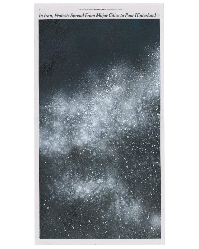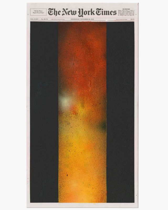 ศิลปินจากนครนิวยอร์ก Sho Shibuya เกิดความหลงใหลในการเก็บบันทึกเหตุการณ์ที่เกิดขึ้นในปัจจุบัน โดยสื่อที่บันทึกเหตุการณ์ปัจจุบันได้ดีที่สุดก็คือ ‘หนังสือพิมพ์’ ดังนั้นเขาจึงนำข่าวหน้าหนึ่งจากหนังสือพิมพ์รายวัน The New York Times มาสร้างสรรค์เป็น ‘งานศิลปะสไตล์มินิมอล’ (Minimalism)